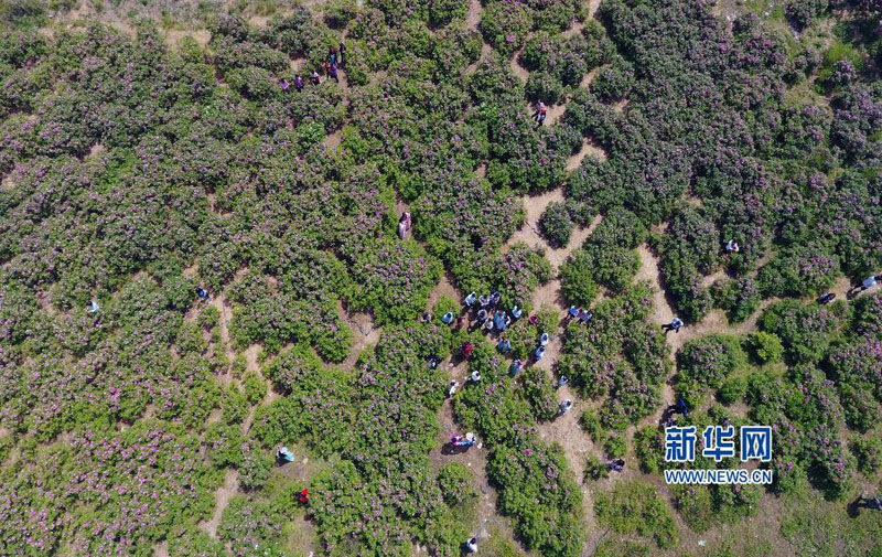 目前,玫瑰谷已成为周边居民旅游踏青、赏花游玩的首选。(新华网江昆 摄)