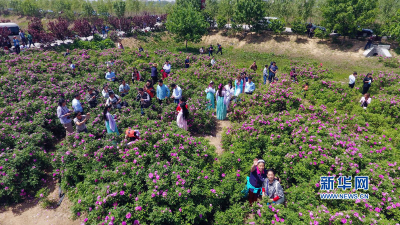 目前,玫瑰谷已成为周边居民旅游踏青、赏花游玩的首选。(新华网江昆 摄)